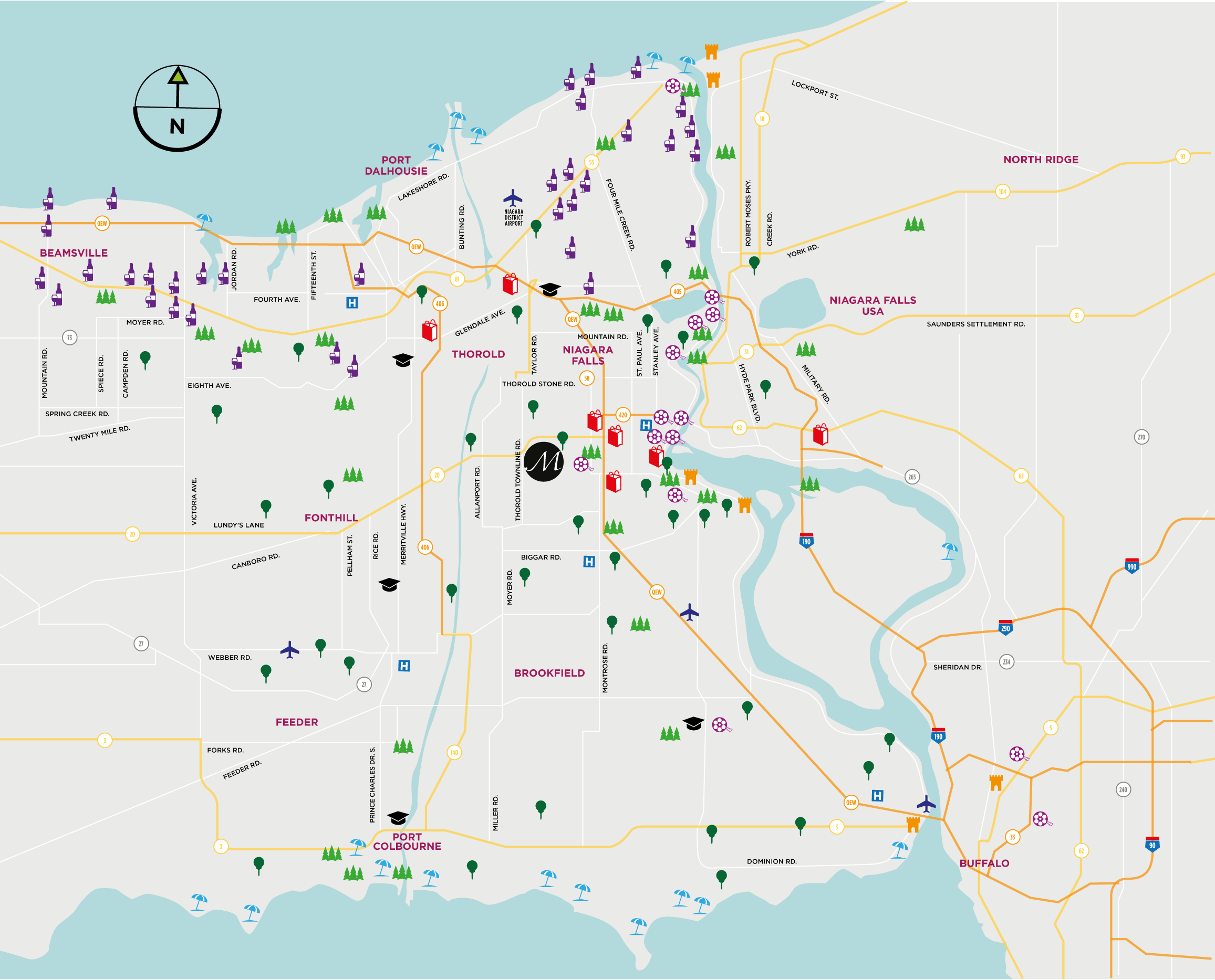 Located just a short drive from the world-famous Niagara Falls, the U.S. border and Buffalo-Niagara Airport, Marbella is surrounded by an abundance of stores, restaurants, parks and entertainment possibilities. And the Greater Niagara Region offers so much more. Explore the area’s superb vineyards and award-winning wineries. Hike the beautiful Niagara Escarpment, sail the numerous waterways, play a round of golf, try your luck at the Fallsview Casino. And when you want to travel, Downtown Toronto and Pearson Airport are both easily accessible via the QEW.